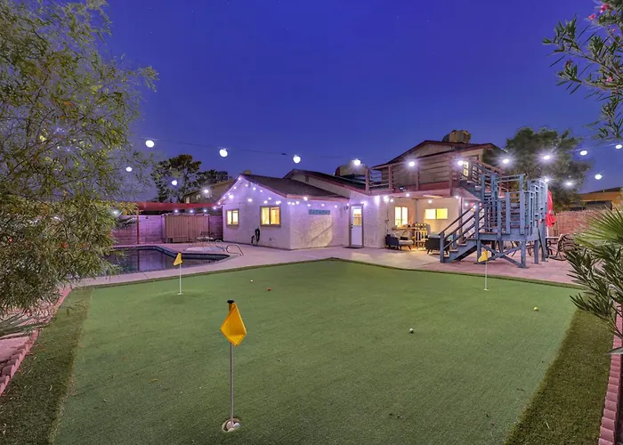 Doté d'une piscine privée pour votre détente, cet établissement Strip-Side Villa, 6 Beds, Pool, Mini Golf, Karaoke Las Vegas est situé à 4 km de la Treasure Island Hotel and Casino. Dotée d'une terrasse, la villa est située à 10 minutes en voiture de La Grande roue de Las Vegas High Roller.